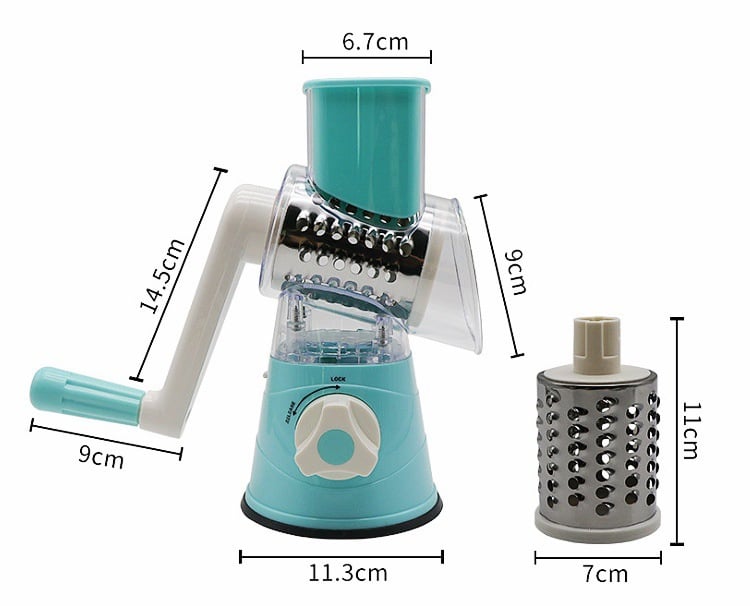 🥕Safe and Heavy Duty: 100% BPA-free food grade ABS and 3 Sharp stainless steel blades ensure product longevity for everyday use.You can simply clean the rotary grater under running water, it is also dishwasher safe.